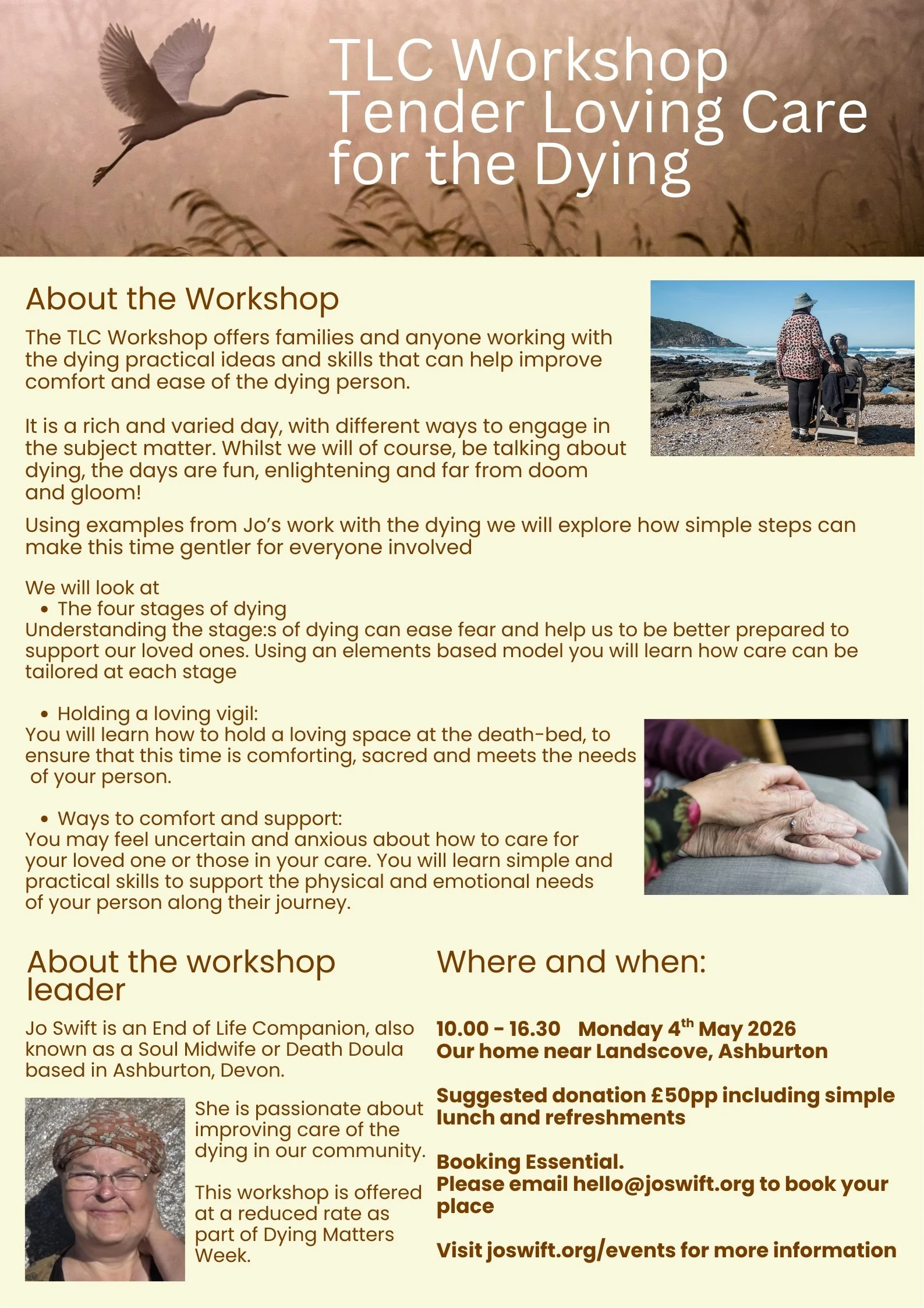 This event is offered at a reduced rate for Dying Matters Week. A donation of £50 is suggested, to include simple lunch and refreshments. Please get in touch if this is a barrier to attending and we can work it out.